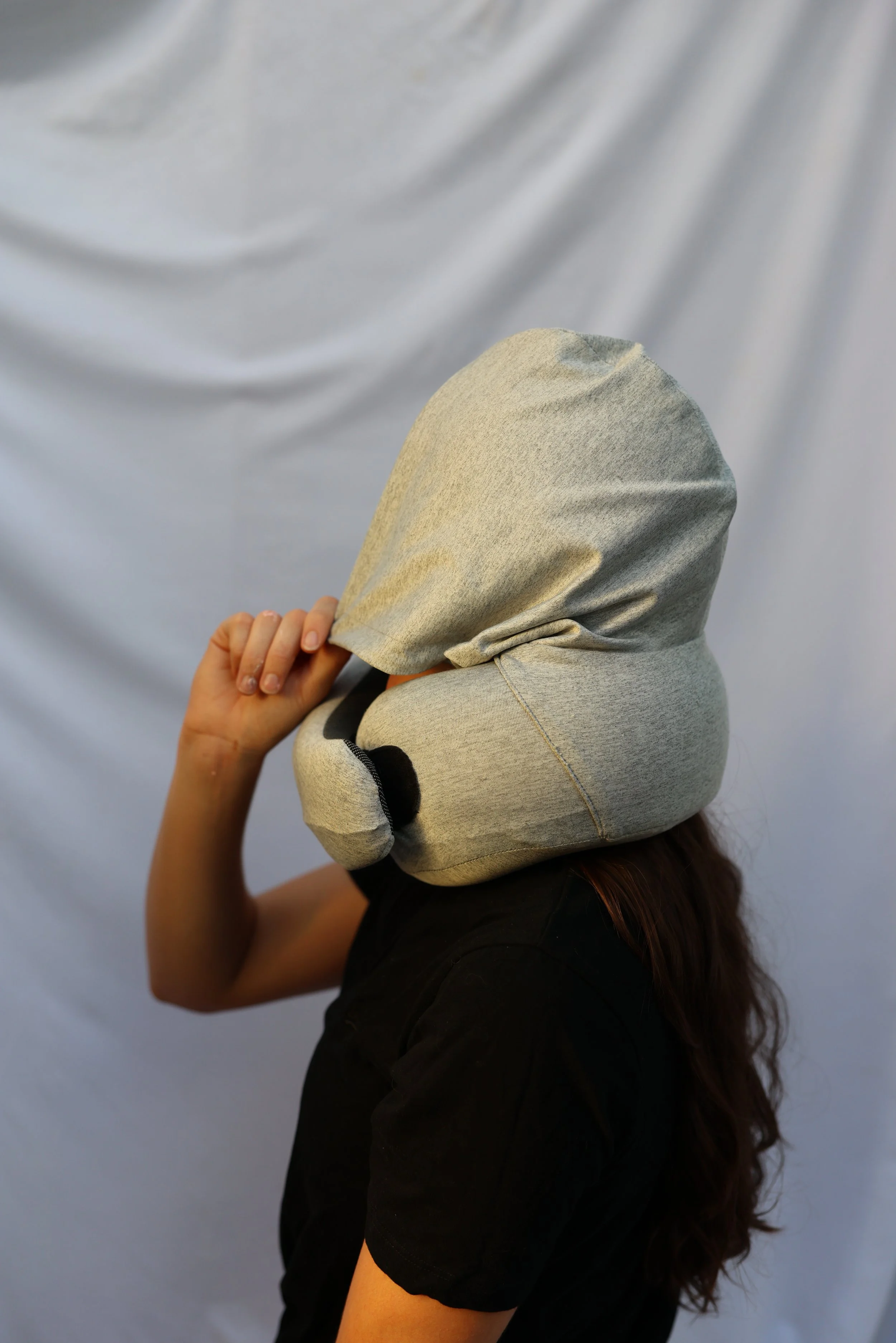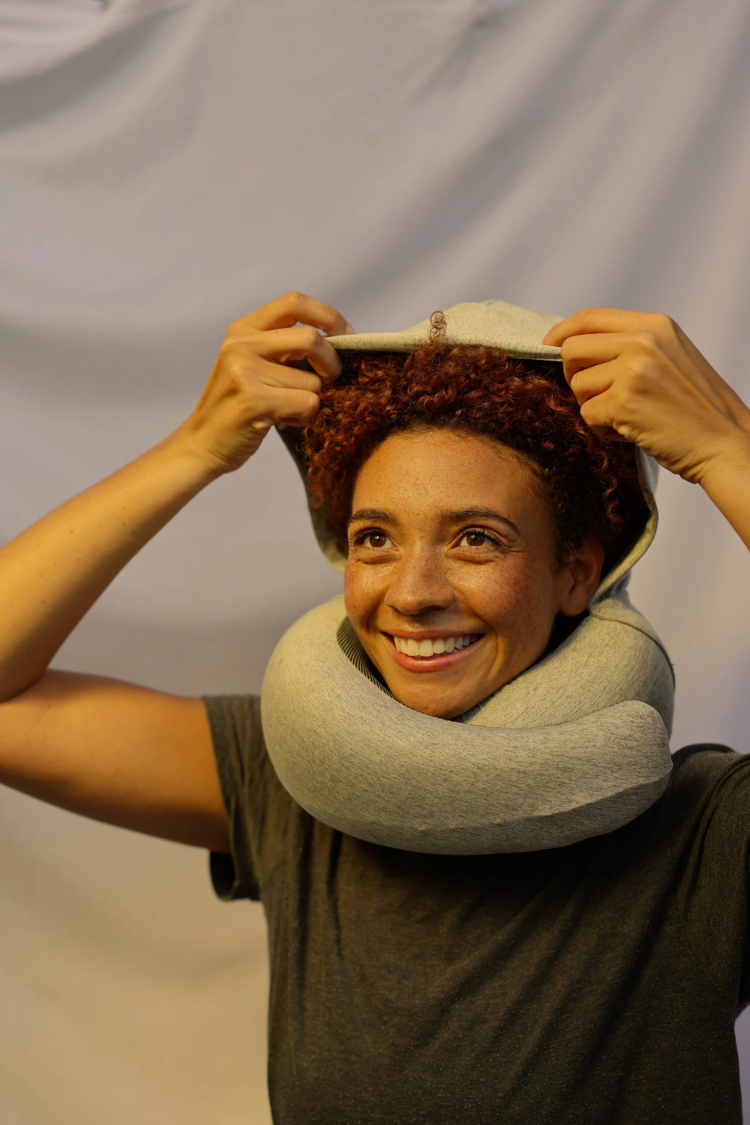 Sleek Design: U-shaped for max support, with a hood and secret pocket for stashing the hood.